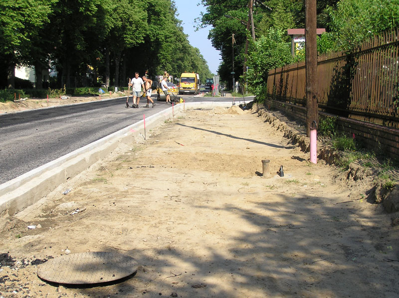 Parallel zu den Arbeiten am Fahrdamm wird auch intensiv am neuen Fußweg auf der nördlichen Straßenseite (stadtauswärts gesehen links) gearbeitet: