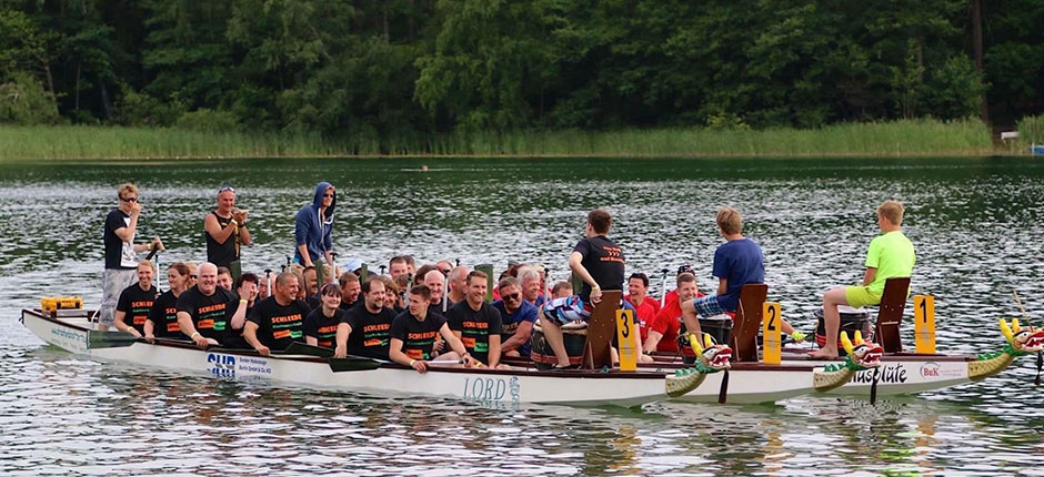 Am Ende der Drachenbootwettkämpfe bedankten sich alle 24 Mannschaften - davon drei mit Handicap - die zu einem fairen sportlichen Wettkampf in den Drachenbooten angetreten waren, bei den Wukey’s für die professionelle Organisation und Durchführung des Drachenbootwettbewerbs und versicherten ihr Wiederkommen. Dass der Paddelsport ein All-Generationen-Sport ist, bewies die Tatsache, dass den jüngsten Paddler die Lichterfelder Jung-Drachen, mit dem neunjährigen Ronny und den ältesten Aktiven im Boot die Güstrower Black Pearl, mit dem 76-jährigen Uwe, stellten. Nach 24 Rennen gingen die „Lakeside Dragons“ aus Strausberg mit der Bestzeit des Tages 00:50.617 vom Platz. Alle Zeiten des Tages findet man unter: www.drachenboote.org.