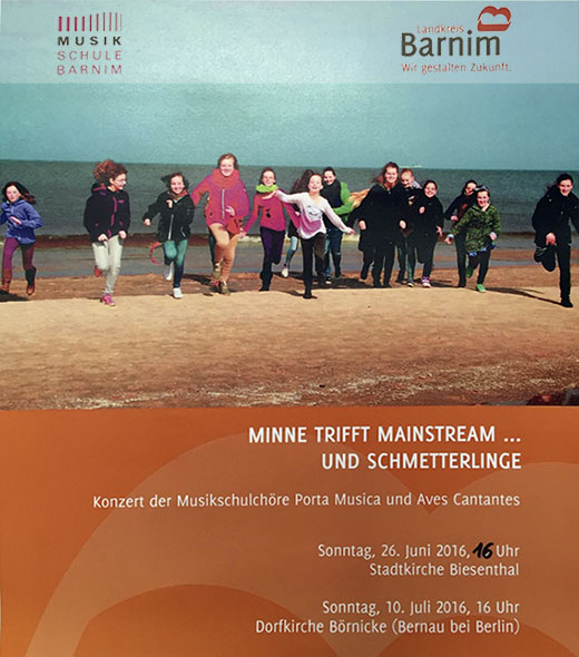 Die Chöre „Porta Musica“ (Erwachsene) und „Aves Cantantes“ (Jugendliche) der Musikschule Barnim singen gemeinsam.