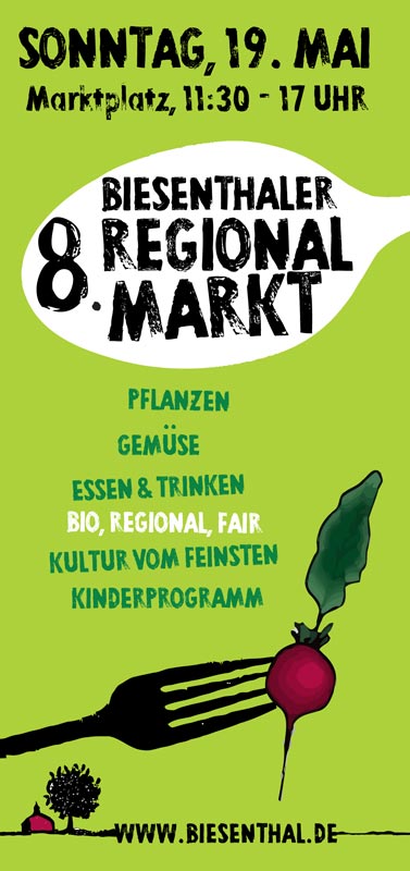 Wieder erwarten Sie auf dem Markt ab 11.30 Uhr bunte Stände mit Produkten aus der Region von frischem Gemüse, Honig, leckerem Käse und heimischem Wildfleisch, Wurst und Fleisch der Wanderschäferei aus Bralitz, von Kräutern bis zu jungen Pflänzchen für den eigenen Blumenkasten, alles gentechnikfrei angebaut und zumeist aus ökologischem Anbau. Für Hungrige gibt es Biobratwurst, allerlei Vegetarisches und Wildkräutersalate, herzhafte und süße Crepes aus der Wukantina, Ziegenkäse-Burger aus Brodowin und den berühmten selbst gebackenen Blechkuchen aus dem Holzofen vom Kulturbahnhof Biesenthal. Dazu gibt es Kunsthandwerk aus der Region, einen Fair Trade Stand und wunderschöne Flechtwaren der Korbmacher aus unserer polnischen Partnerstadt Nowy Tomysl.