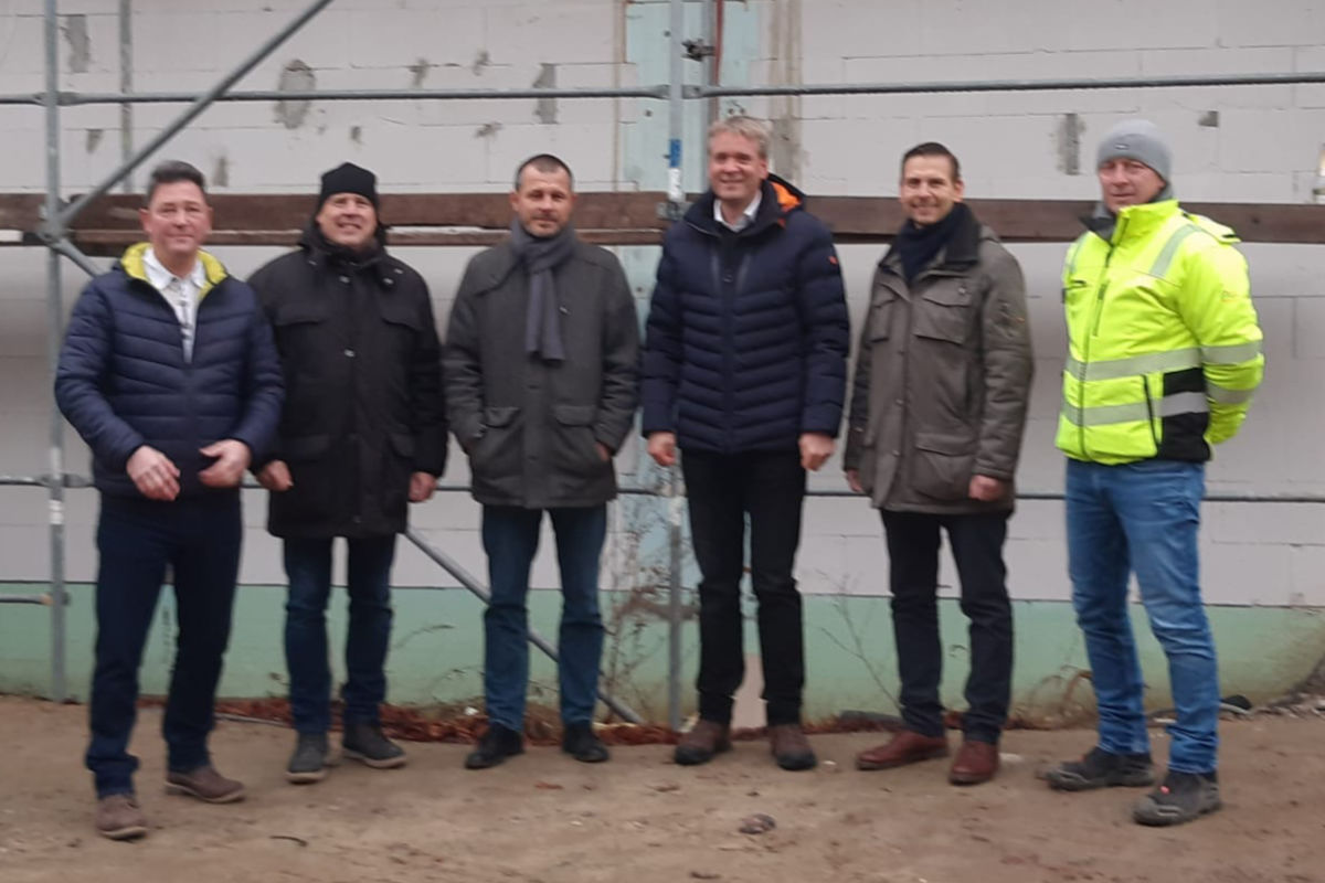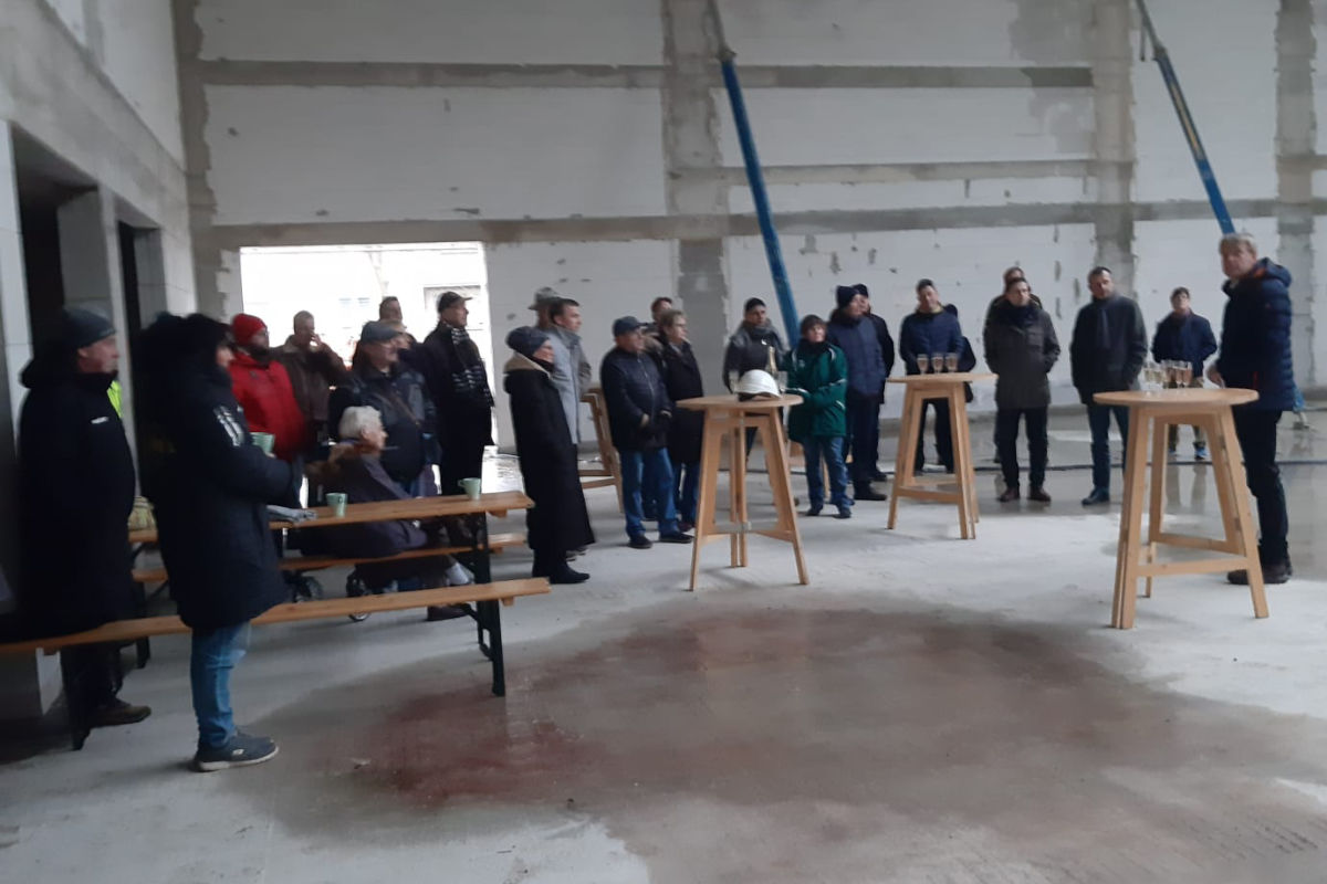 Unter den Anwesenden waren der Amtsdirektor des Amtes Biesenthal-Barnim Herr André Nedlin, der ehrenamtliche Bürgermeister Herr Carsten Bruch, Herr Oliver Turner als Vertreter des Landkreises, Vertreter der Stadtverordnetenversammlung, der bauausführenden Firmen, des Planungsbüros, des SV Biesenthal und der Amtsverwaltung. Gemeinsam bestaunten sie den großzügigen Rohbau und feierten den Baufortschritt.