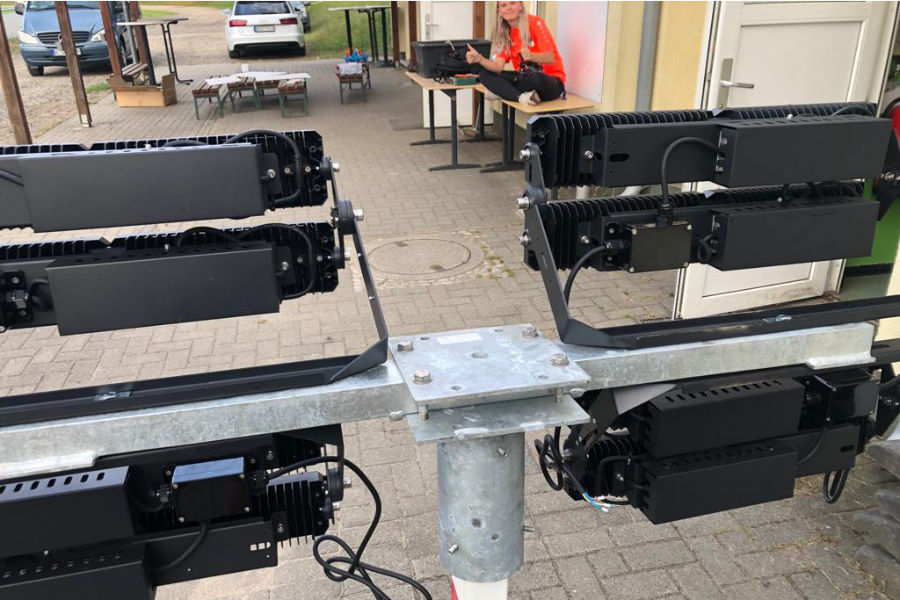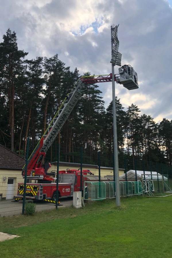 Alte Flutlichtanlage abbauen – Neue Flutlichtanlage anbauen, Ausrichtung der Flutlichtanlage – das war unser Ziel bevor die dunkle Jahreszeit beginnt.