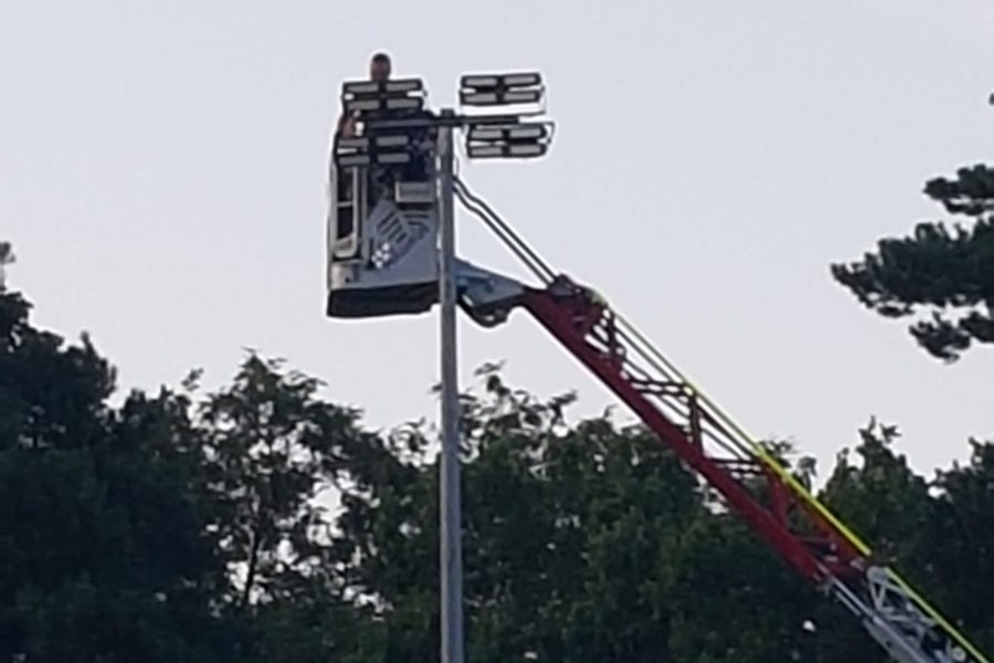 Ein großer Dank gilt auch Henning Schulze (Trainer der F-Jugend in unserem Verein), der keine Sekunde gezögert hat und zur Stelle war, um in luftiger Höhe bei der Demontage und Montage der Anlage zu unterstützen.
