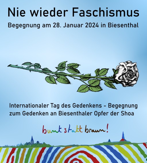 Wir wenden uns auch heute gegen jede Art von menschenverachtenden Einstellungen, insbesondere gegen Antisemitismus und Rassismus. Dabei sind wir solidarisch mit Juden und Jüdinnen, die heute in Deutschland Hetze und Bedrohung erfahren, und mit allen Menschen, die ausgegrenzt und benachteiligt werden, darunter geflüchtete Menschen, Angehörige muslimischen Glaubens und viele andere. Wir stehen für ein solidarisches Miteinander in Biesenthal mit allen Menschen.