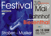 Bereits zum vierten Mal findet am Pfingstsamstag das Straßenmusikerfest am Bahnhof Biesenthal statt. Wieder geben einen Tag lang Musiker und Musikerinnen aus aller Welt Konzerte im Freien für umsonst. Ab 15 Uhr bis in den späten Abend präsentieren sie alles von Rockmusik über Klassik bis hin zu Klängen Lateinamerikas und Afrikas. Für leckeres Essen sorgen die Biobauernhöfe und -läden der Umgebung und der Verein „Kultur im Bahnhof“ verkauft Getränke und Kuchen. weiter