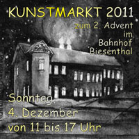 Am Sonnabend, den 26. November 2011, lockt der Biesenthaler Weihnachtsmarkt von 11.30 Uhr bis 19.30 Uhr mit vielen Ideen zum Fest und abwechslungsreichem Programm zum Bummeln auf dem Marktplatz in Biesenthal. Alter Tradition folgend, laden wir alle Biesenthalerinnen, Biesenthaler und Gäste ganz herzlich zu unserem diesjährigen Weihnachtsmarkt ein. Für Ihr leibliches Wohl wird mit einer Vielfalt von Angeboten gesorgt. weiter