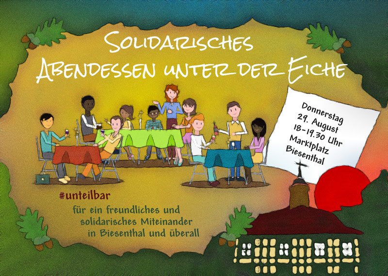 Im letzten September gab es das erste Abendessen unter der Eiche am Marktplatz in Biesenthal. Für eine leuchtende Stunde kamen 250 Menschen verschiedensten Alters, Glaubens, Herkunft und auch sonst vielfältiger Arten und Weisen zusammen. Gemeinsam wurde bei musikalischer Untermalung gegessen, sich ausgetauscht und ein Zeichen für ein offenes und solidarisches Miteinander und gegen Ausgrenzung und Rassismus gesetzt. mehr