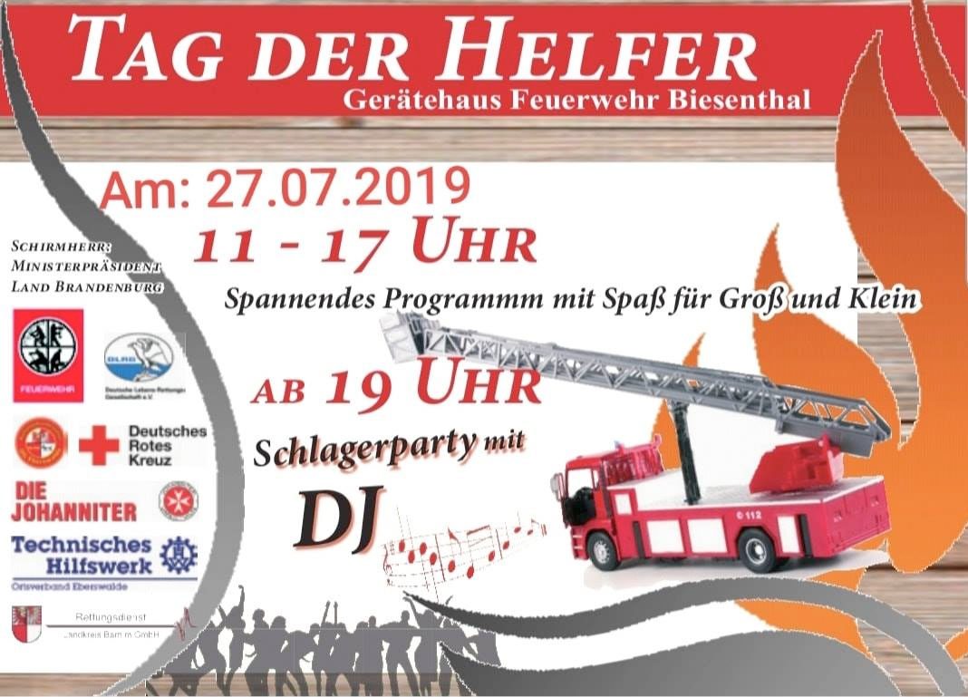 Am Sonnabend, dem 27.7.2019 von 11:00–17:00 Uhr findet der achte Tag der Helfer unter der Schirmherrschaft von Brandenburgs Ministerpräsident Dietmar Woidke statt.