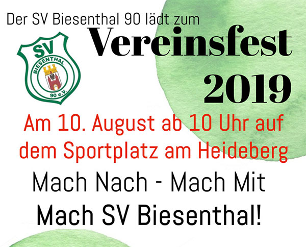 Der SV Biesenthal 90 lädt alle Fans, Sportinteressierte und Mitglieder zum aller ersten Vereinsfest des SV Biesenthals ein! Fußball, Handball, Volleyball, Badminton, Tischtennis, Kindersport, Gymnastik und Aroha haben ein großes Programm vorbereitet und warten nur auf zahlreiche Gäste! weiter