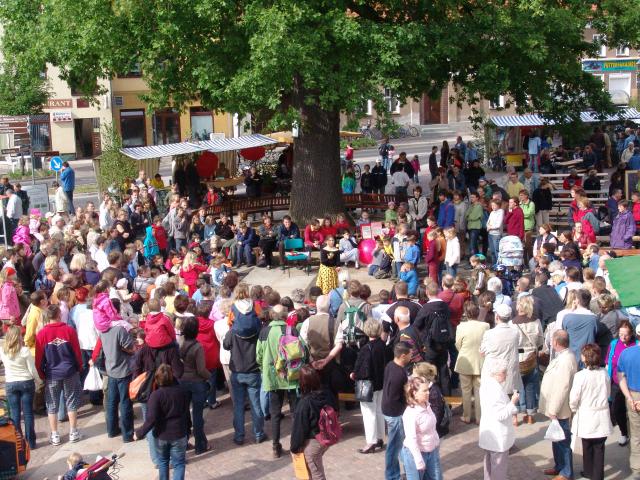 Weit mehr Besucherinnen und Besucher als erwartet – aus Biesenthal, dem Barnim und Berlin – fanden am 14. Mai den Weg auf den Marktplatz von Biesenthal zum Frühlingsfest in der Naturparkstadt. Unter der alten Eiche war ein Markt mit einer bunten Mischung von Ständen entstanden, der fast das Flair südlicher Kultur ausstrahlte: entspannte Menschen, freundliche Gesichter, geschäftiges Treiben, spielende Kinder, interessierte Gespräche, im Hintergrund ruhige Gitarrenmusik und alles unter einem sich aufhellenden strahlenden Himmel. Insgesamt waren über 2000 Menschen gekommen, darunter auch die etwa 500 Teilnehmenden der verschiedenen Rad- und Wandertouren, die jeweils mit einem großem Applaus begrüßt wurden.