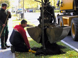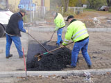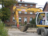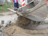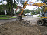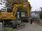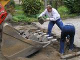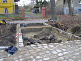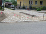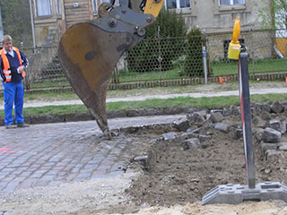 11.4. Das Ende der historischen Pflasterdecke der Bahnhofstraße beginnt mit dem Ausgraben der Pflastersteine.