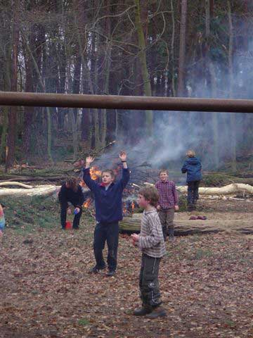 Arbeitseinsatz am 1.4.06: Die Baumstämme werden geschält.