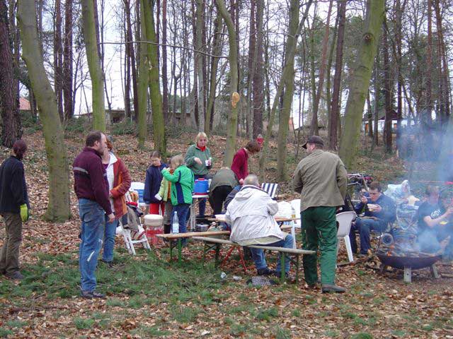 Arbeitseinsatz am 1.4.06: Die Baumstämme werden geschält.